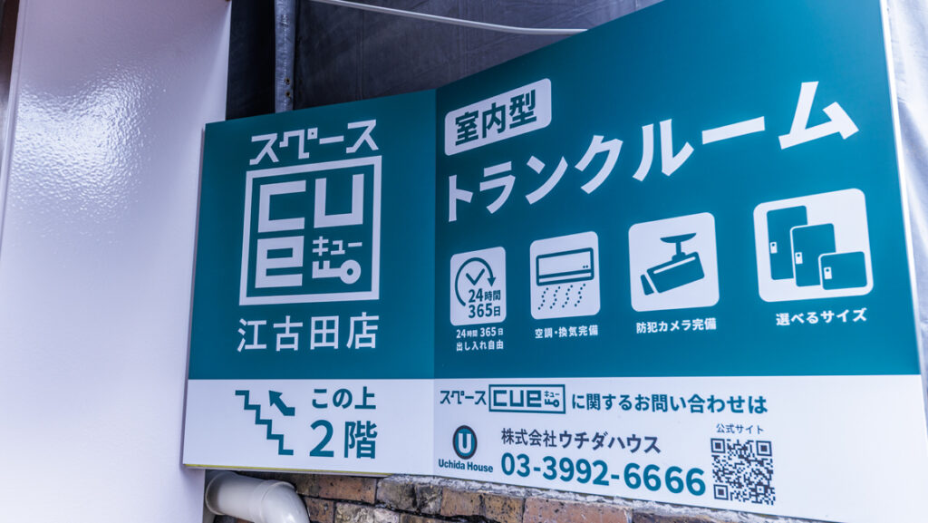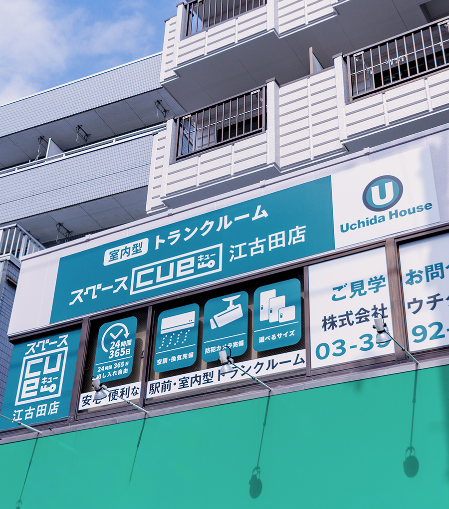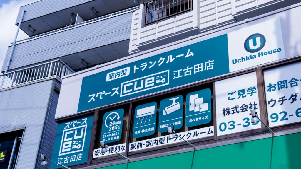 東京都練馬区江古田の屋内型トランクルーム「スペースCue 江古田店」。江古田駅・新桜台駅・新江古田駅から徒歩圏。駅近物件で利用しやすく、空調・除湿管理とセキュリティで大切な荷物を安心保管。